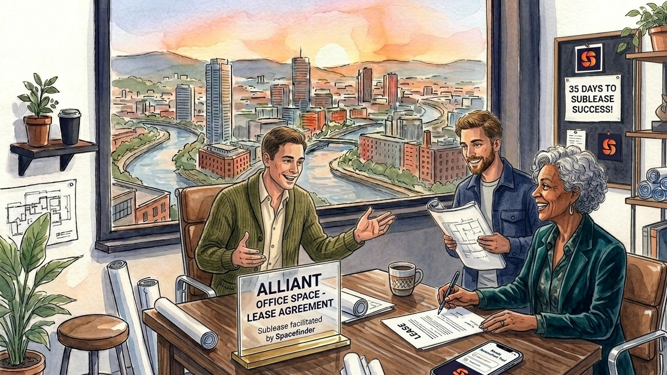 How quickly can I expect to sublease an office? It varies, but with proper exposure and targeted advice, it can happen quickly. In Alliant’s case, it only took 35 days to find a new tenant through Spacefinder.
