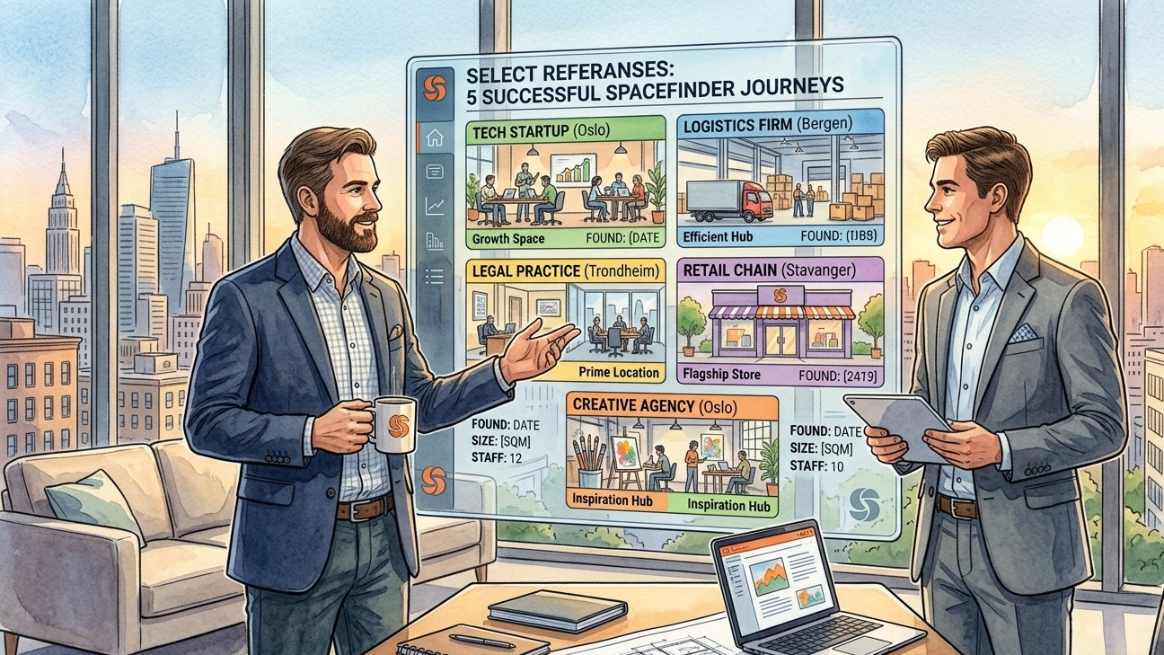 Spacefinder.no er en gratis digital rådgivningstjeneste som gjør kontorsøk enklere for små og mellomstore bedrifter i Oslo. Med vår digitale rådgiver kan leietakere matches med ledige kontorer, sammenligne priser, booke visninger og mye mer. I tillegg har Spacefinder rådgivere som bistår små og mellomstore bedrifter som ønsker en personlig tilnærming for å finne kontorløsninger som passer deres behov – fra fleksible plasser i coworking, private kontorer i kontorfellesskap til egne tradisjonelle kontorer. Her deler noen utvalgte leietakere sine erfaringer med å finne kontor via Spacefinder, basert på referanser de har lagt igjen på Google Review.