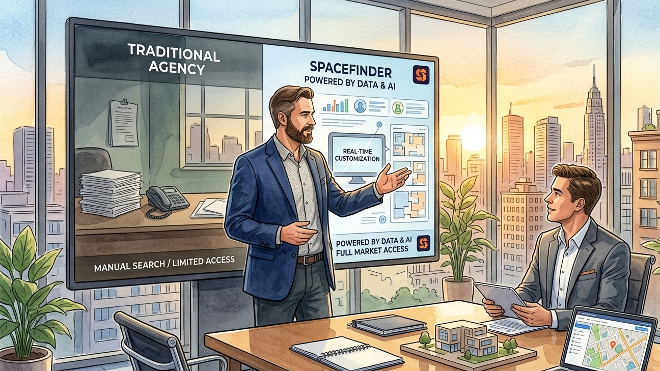 Spacefinder fungerer på mange måter som en tradisjonell megler, men har utviklet egne systemer og en datadrevet metode som gjør prosessen langt mer effektiv. I tillegg er det tett dialog med gårdeiere over hele landet, noe som gir tilgang til både annonserte og ikke annonserte lokaler.